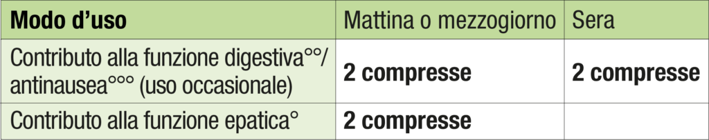 Funzione digestiva°/epatica°° Proprietà antinausea°°°